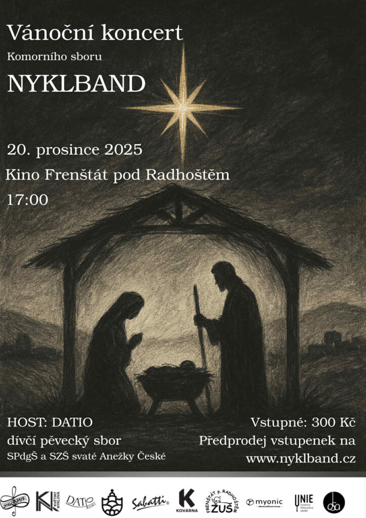 Přijměte pozvání a přijďte si odpočinout od předvánočního shonu, nechat se unést krásou adventních i vánočních melodií a naladit se na sváteční pohodu. V rámci programu zazní známé písně ve vlastních originálních úpravách. Koncert proběhne v sobotu 20. 12. 2025 od 17.00 ve frenštátském kině. Těšit se můžete na Nyklband, komorní orchestr a hosta dívčí pěvecký sbor Datio, kteří společně vytvoří nezapomenutelný hudební zážitek umocněný originální koncertní výzdobou.